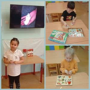 * Неделя здоровья Традиционно в начале апреля в нашем детском саду проходит тематическая неделя, посвящённая Всемирному Дню здоровья. Педагоги проводят различные мероприятия, на которых учат дошкольников заботиться о своём здоровье. Например, в младшей группе № 1 прошло развлечение "Путешествие в Страну здоровья". Воспитанники встретились с Зубной Феей, которая учила ребяток правильно чистить зубы, советовала кушать полезные продукты и не есть вредные. Дети закрепили правила в играх, а потом рисовали пальчиком не привычными красками и карандашами, а цветной зубной пастой! ![]() В средней группе № 8 реализован краткосрочный проект "Будем здоровы!". Педагоги провели беседы о здоровом образе жизни, с целью закрепления представления детей о правилах гигиены познакомили их со сказкой К.Чуковского "Мойдодыр", играли с детьми в тематические дидактические игры. Ребята с азартом участвовали в спортивных играх и эстафетах. ![]() В мероприятиях Недели здоровья в ДОУ приняли участие и родители. Например, малышам группы "Солнышко" мамы показали небольшой кукольный спектакль по сказке "Зайка заболел". Ребятишки сочувствовали главному герою, станцевали для него, чтобы развеселить, а потом с аппетитом угощались морковкой! ![]() * Неделя детской книги В ходе Недели детской книги воспитанники подготовительной группы №10 из познавательных бесед узнали об истории создания книг, знакомились с творчеством известных русских и зарубежных писателей, побывали на библиотечном занятии в ЦГДБ. Ребята приносили в детский сад свои любимые книги, рассказывали о разных сказочных героях, рисовали полюбившихся персонажей. Из рисунков была оформлена выставка "Мы читаем и рисуем". ![]() * Огород на окне В рамках экологического проекта "Эколята-дошколята" традиционно в конце марта - начале апреля в группах появляются "огороды на подоконнике". И, конечно, самым популярным растением является лук! Вот и ребята из младшей группы "Пчёлки" узнали много интересного о полезных свойствах лука. Дошколята с интересом рассмотрели луковицы, познакомились с их строением и этапами посадки. Посадка лука - это и эксперимент, и опыт, и ведение дневника наблюдений, и зелёные витамины. И нет ничего приятнее, когда первая зелень подрастает у ребят на глазах. А сам процесс наблюдения за ростом растения способствует развитию любознательности и наблюдательности. Процесс посадки лука для воспитанников младшей группы был интересным новым опытом. Теперь они с нетерпением ждут результата! ![]() |