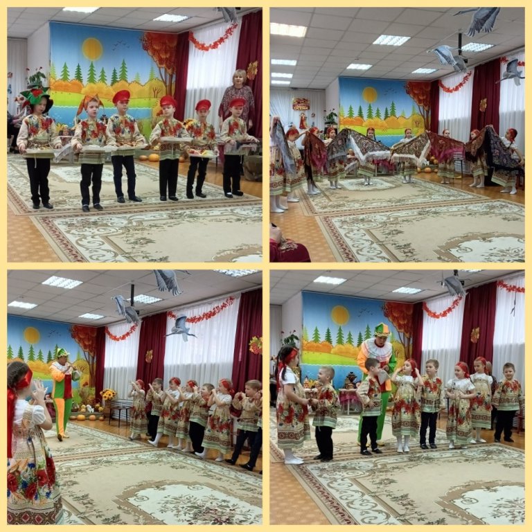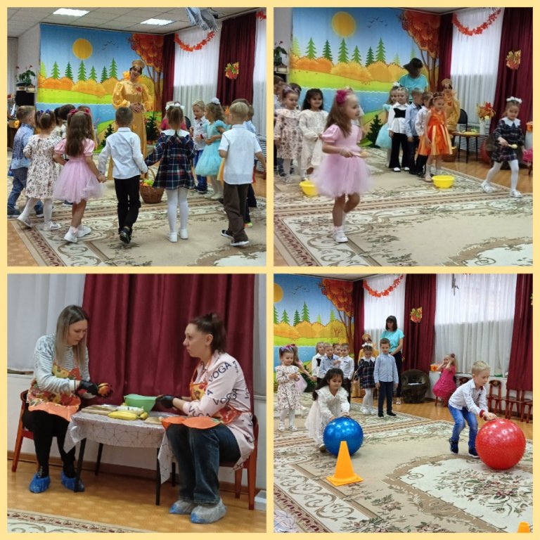 11 ноября родители воспитанников групп № 1 и № 8 вместе с педагогами дружно потрудились и привели в порядок свои прогулочные участки. Благодарим всех тех, кто, несмотря на занятость, находит возможность оказать помощь дошкольному учреждению в благоустройстве территории! Отдельное спасибо участникам субботника, которые собрали опавшую листу в "Берендеевке"! ![]() * День народного единства Накануне Дня народного единства с целью патриотического воспитания со старшими дошкольниками были проведены тематические беседы об истории праздника, о дружбе и взаимопомощи народов России. Педагоги группы № 5 вовлекли воспитанников в художественно-творческую деятельность, в результате чего появились коллективные работы, показывающие красоту природы нашей страны, отражающие единство населяющих её народов. ![]() * Осенние утренники Во всех возрастных группах детского сада прошли осенние утренники. На праздник в группу № 1 заглянула красавица Осень, послушала песенку о себе и закружила малышей в танцах. Дети подружились с Мишкой, помогли ему собрать шишки. Воспитанники младших групп № 2, № 3 и № 11 побывали в осеннем лесу, где танцевали с листочками, пели, играли в игры и аттракционы с персонажами кукольного театра. На праздники в средних группах № 7 и № 8 приходили сказочные персонажи Шуршик и Огородное Пугало, которые порадовали ребят играми и шутками. Дошколята не только звонко пели песни, водили хоровод, участвовали в весёлых играх ("Перевези урожай", "Собери грибы" и др.), но и разыграли сценку "Таня и яблонька". Воспитанники старших групп № 5 и 6 по просьбе Дяди Фёдора отправились на поезде в деревню Простоквашино, где, участвуя в играх и аттракционах, помогли Матроскину и Шарику собрать урожай, приготовить борщ и компот, наловить рыбы, посушить грибы, а потом сыграли с ними в оркестре русскую народную мелодию. Дети продемонстрировали свои навыки в пении, танцах, чтении стихов, разгадывании загадок. На балу у Королевы Осени побывали воспитанники подготовительных групп № 9 и №10. Они пели, кружились в танце и в хороводе, справились с загадками фрейлин Сентябрины, Октябрины и Ноябрины, показали, как умеют прыгать через лужи, чтобы не замочить ноги. Всем понравилась осенняя сказка про трёх весёлых поросят и незадачливого Волка. И, конечно же, все ребятишки получили витаминные угощения! Праздники подарили много позитивных эмоций и ребятам, и гостям-родителям. ![]() ![]() ![]() ![]() ![]() * Сотрудничество с музыкальной школой Педагог-психолог ДОУ в рамках сотрудничества приняла участие в семинаре-практикуме, который проходил в музыкальной школе №7. Она выступила с темой "Роль музыки в развитии гибких навыков у детей и взрослых". #ГПН_2023#ГодПедагогаНаставника#образование_37#ИвановскаяОбласть ![]() * День осенних именинников В группе "Солнышко" прошло развлечение "День осенних именинников", на котором поздравили ребят, родившихся осенью. В весёлые игры с клоунессой Ириской были вовлечены все дети. Хорошее настроение было обеспечено всем! ![]() |